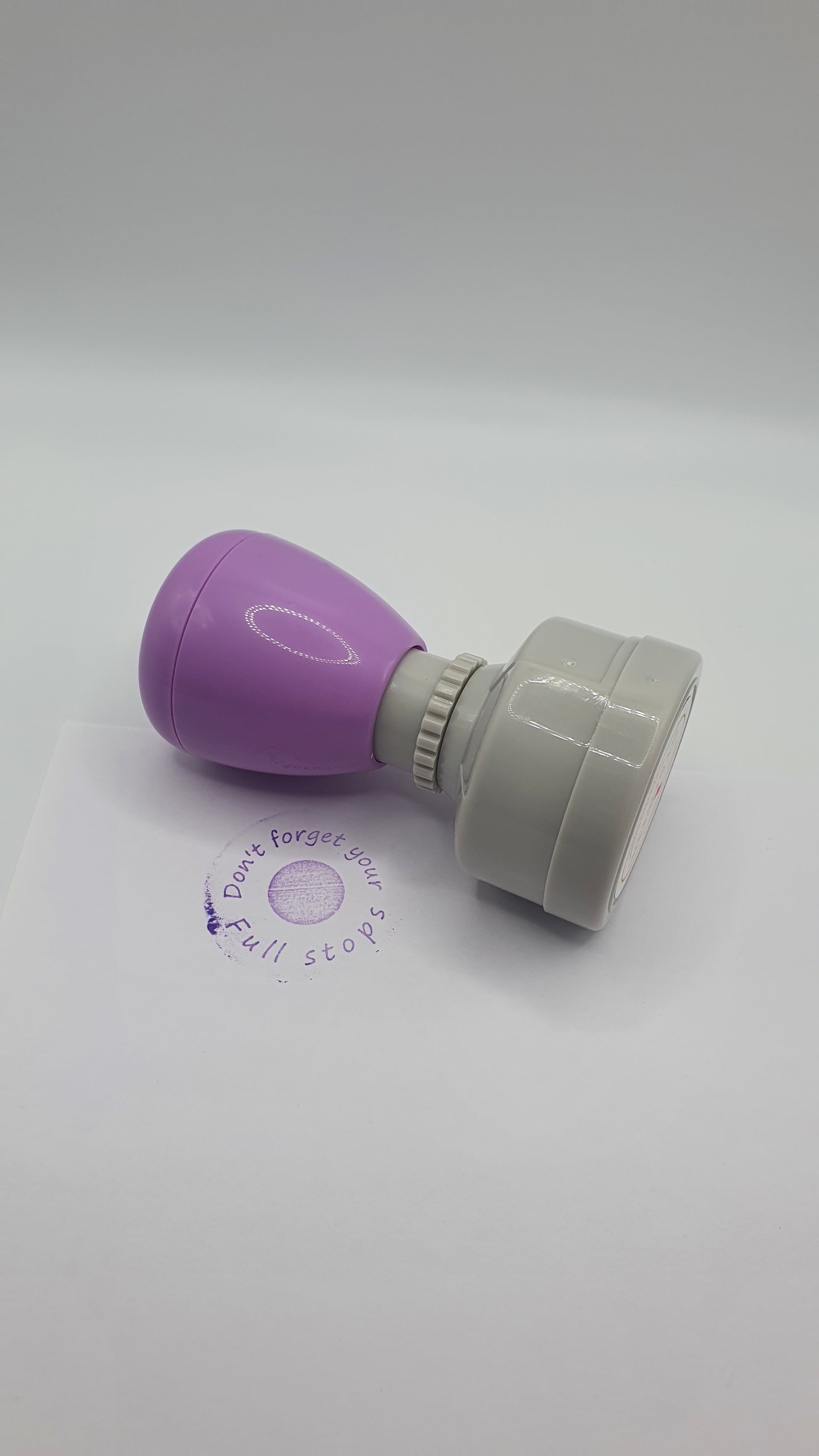Rainbow stamps come with a yellow handle and use yellow, pink and blue ink.